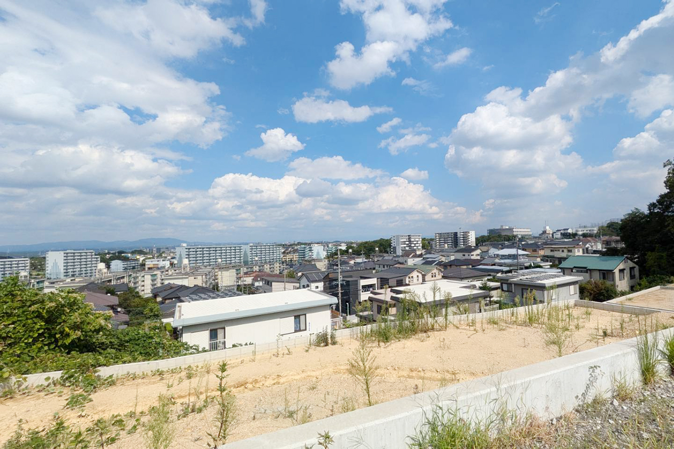 現地から北東側を撮影しました。119坪の敷地から広大な眺望が楽しめます。広い敷地は隣地と距離のある配置で、暮らしに伸びやかさを持たせながら、お家アウトドアや趣味も色々楽しめます。