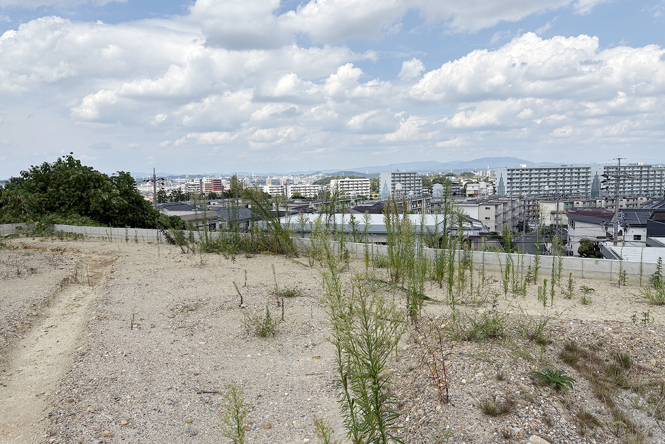 現地から北東側を撮影しました。119坪の敷地から広大な眺望が楽しめます。広い敷地は隣地と距離のある配置で、暮らしに伸びやかさを持たせながら、お家アウトドアや趣味も色々楽しめます。