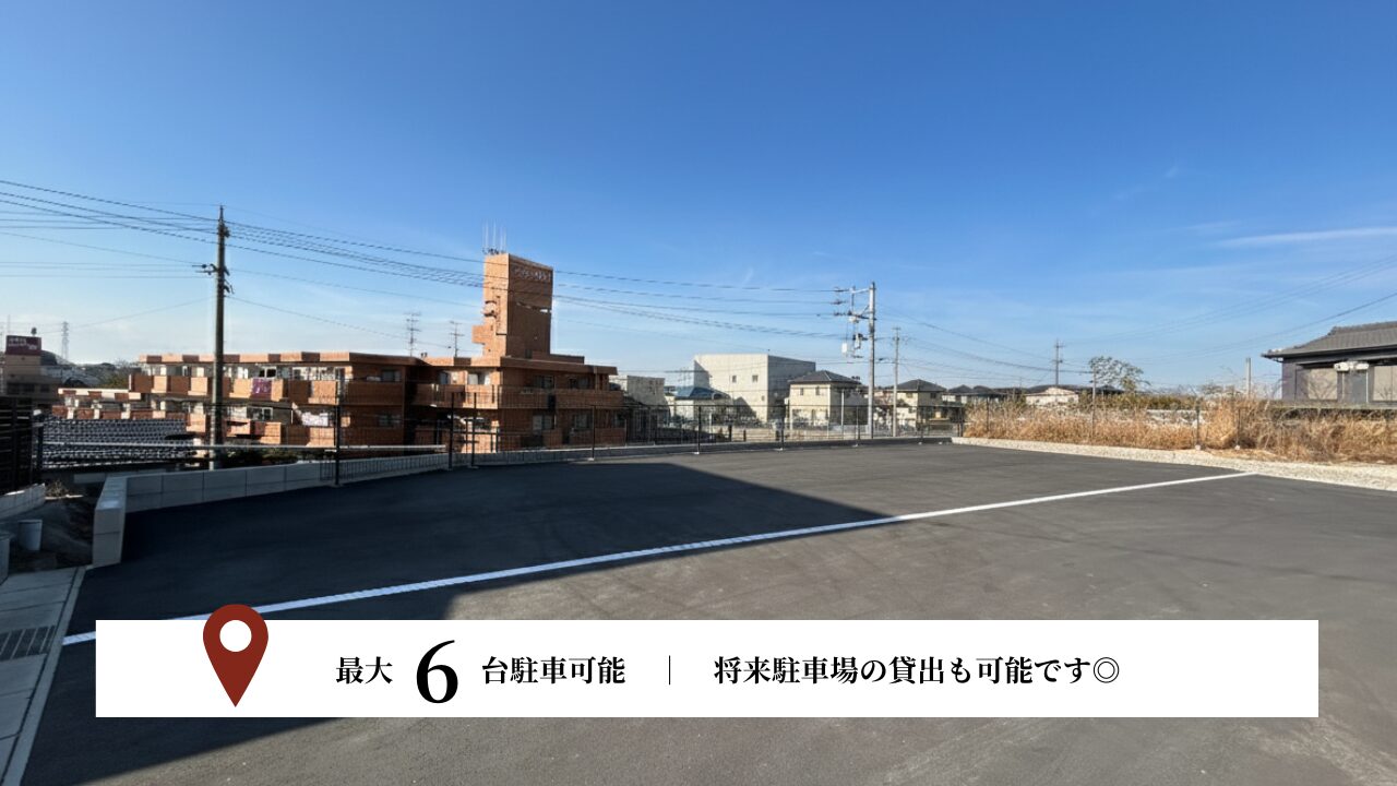 約22坪のスペースは、最大6台の駐車場としてご利用いただけます。