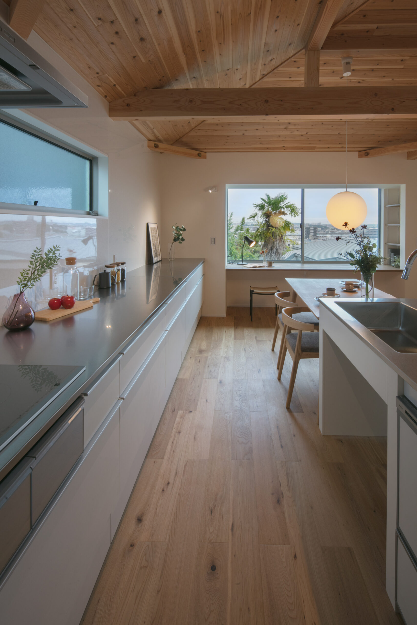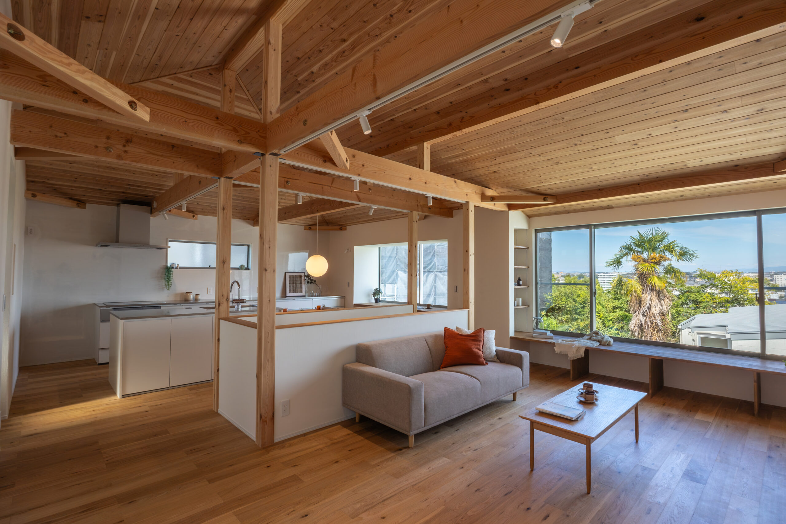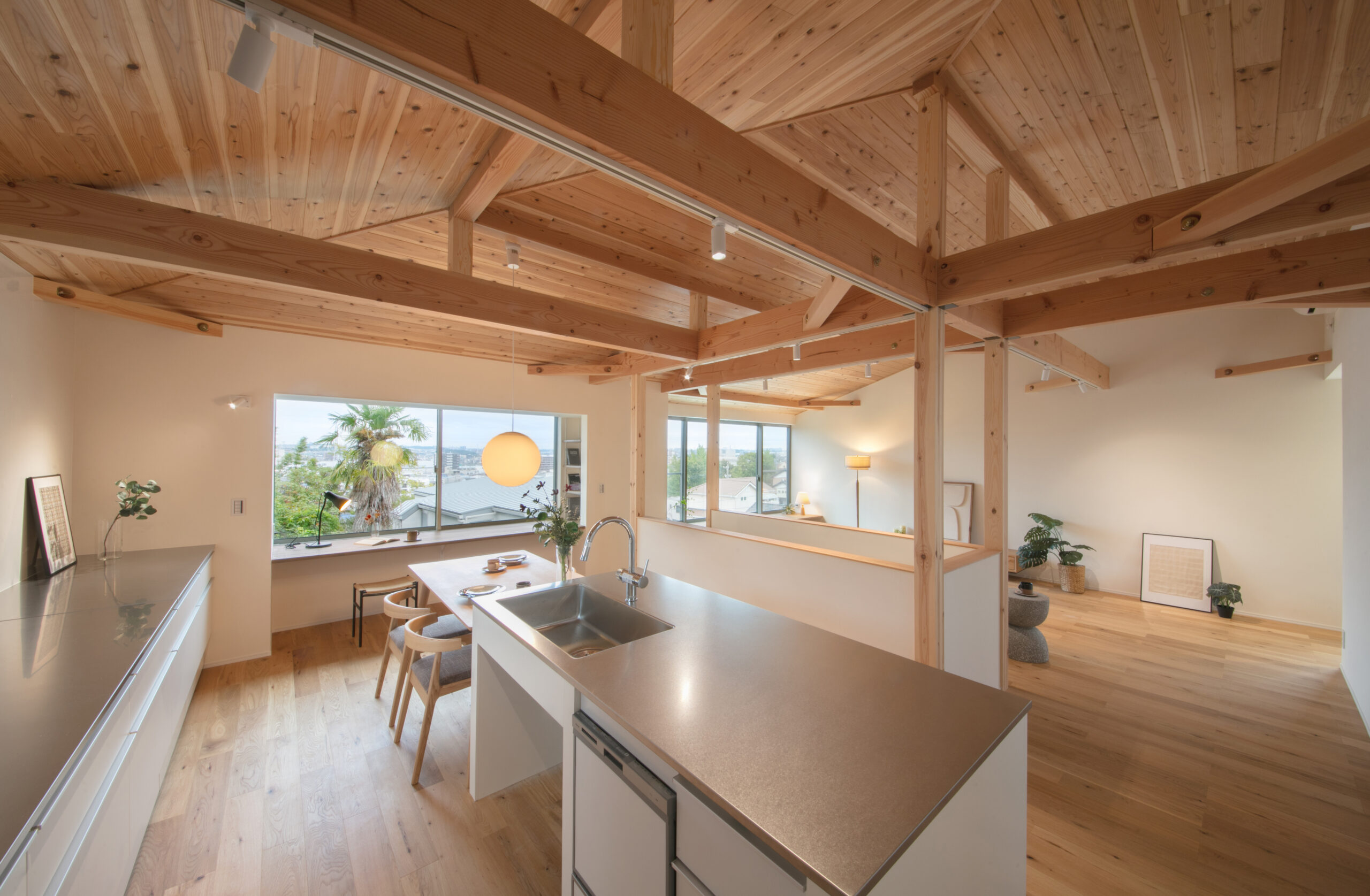 周辺環境を活かし、視線の抜けと採光を最大限に引き出した設計としています。
