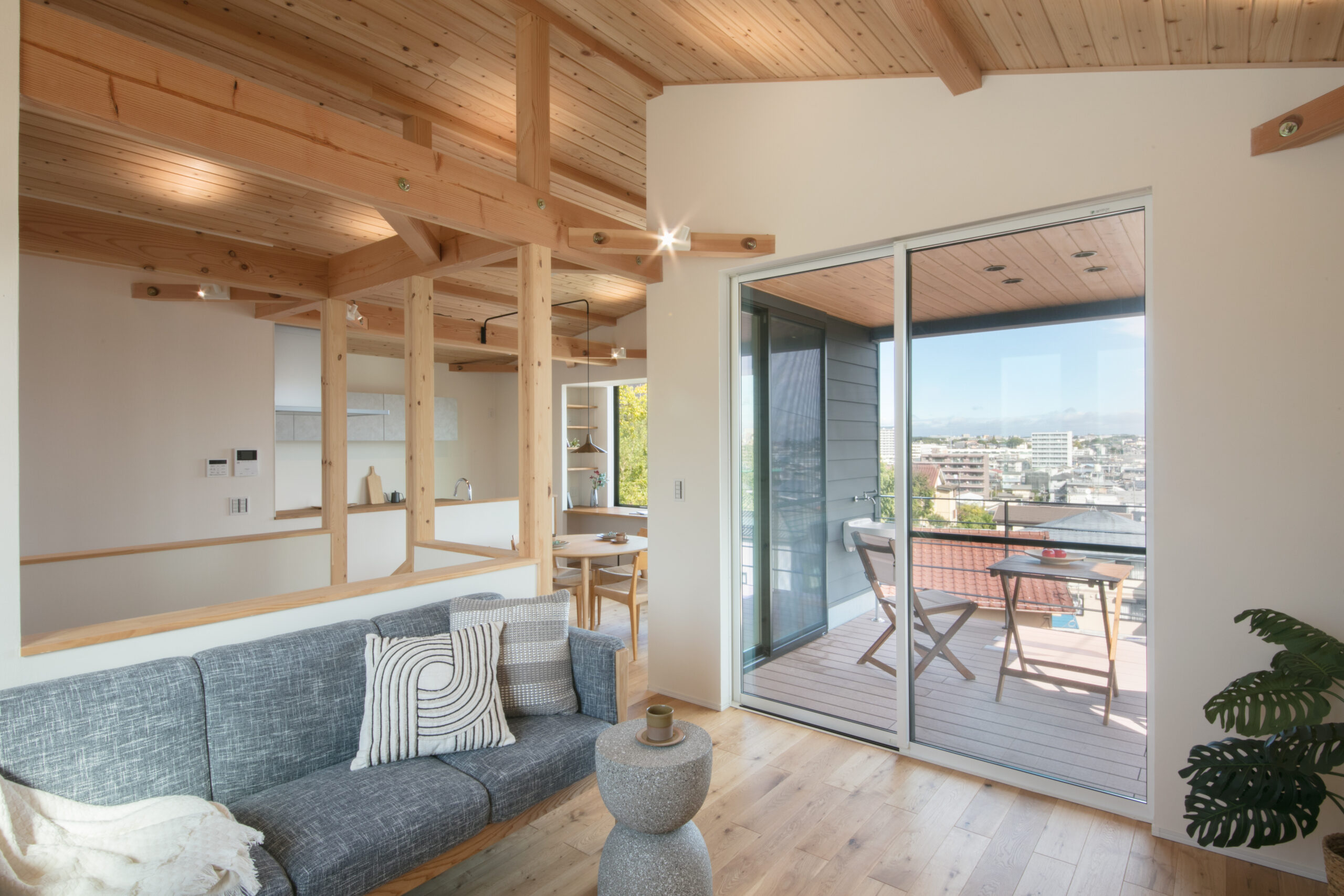 眺望を取り込む2階リビングとすることで、開放感あふれる空間を創出しています。