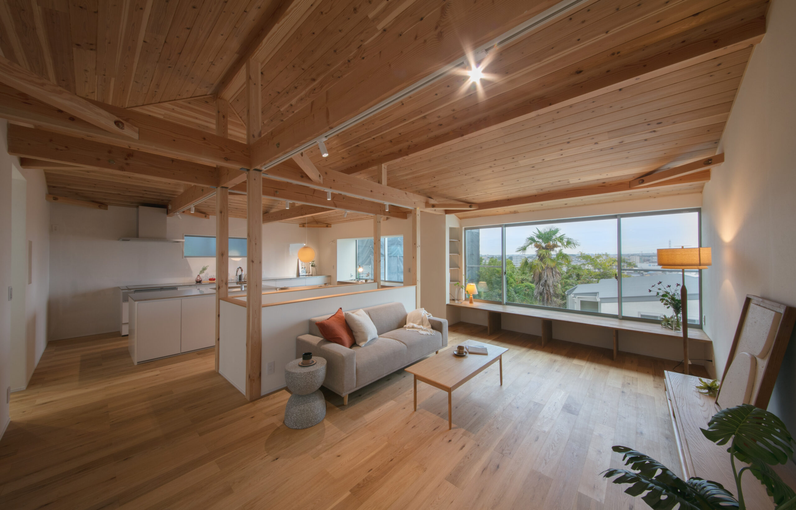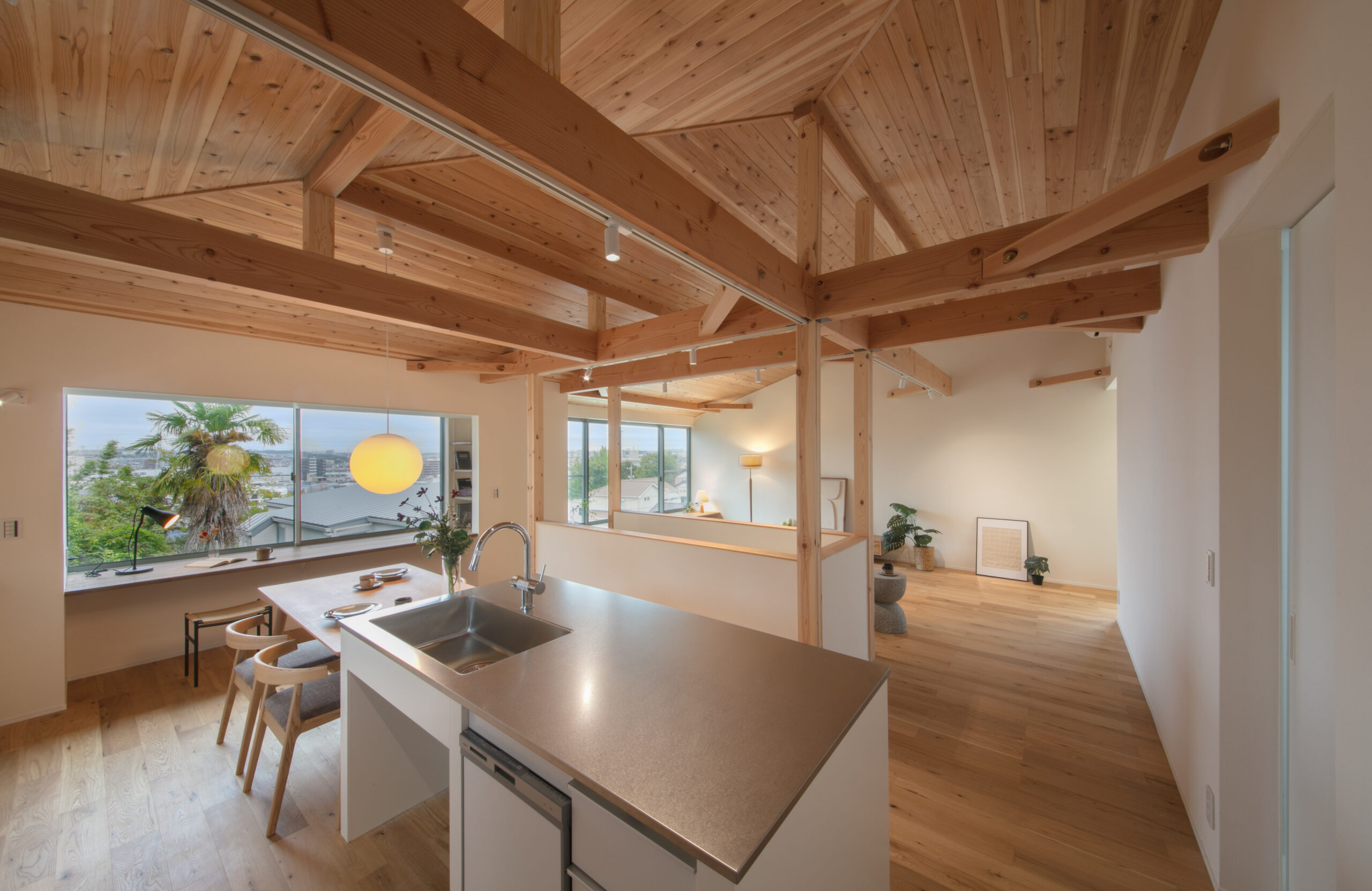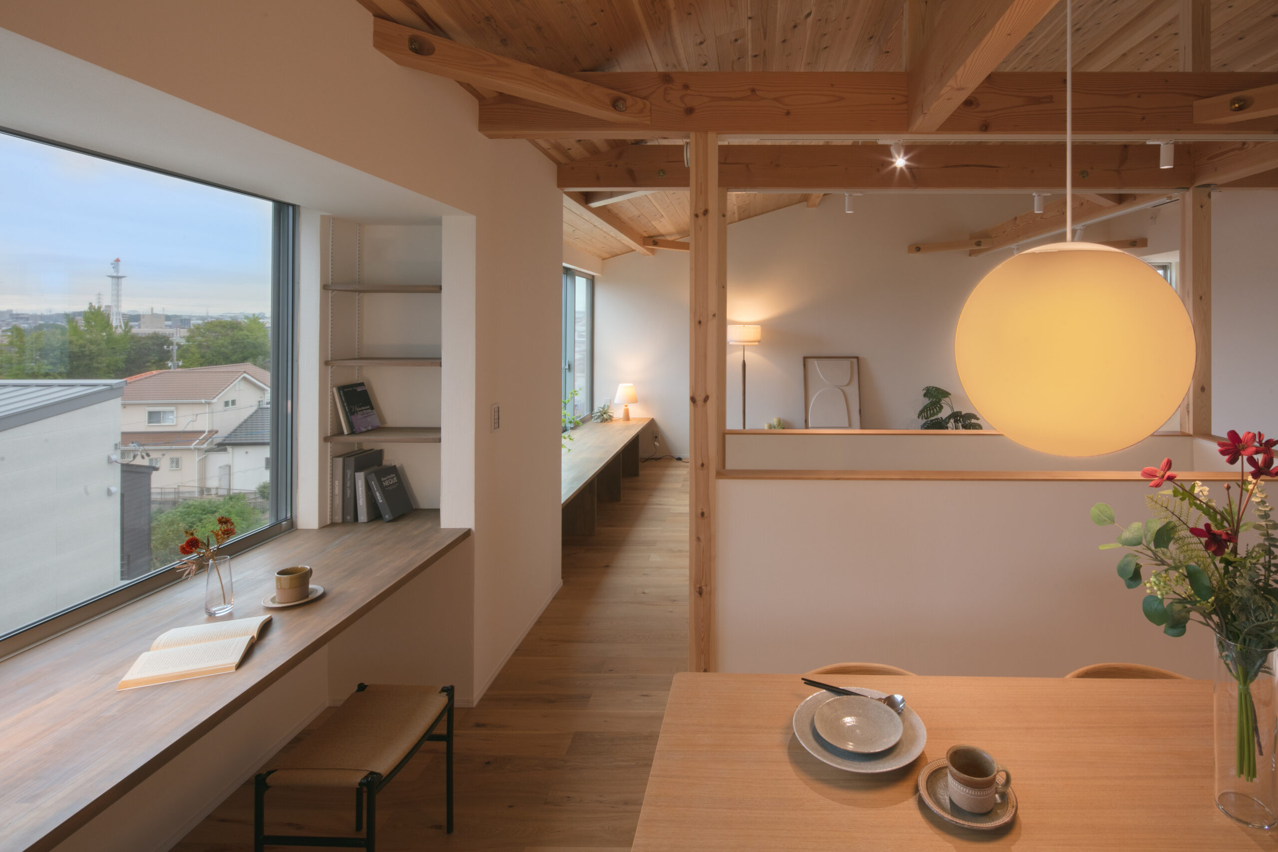 天井の抜け感があるので圧迫感もなく、旅先のような楽しさがあります。